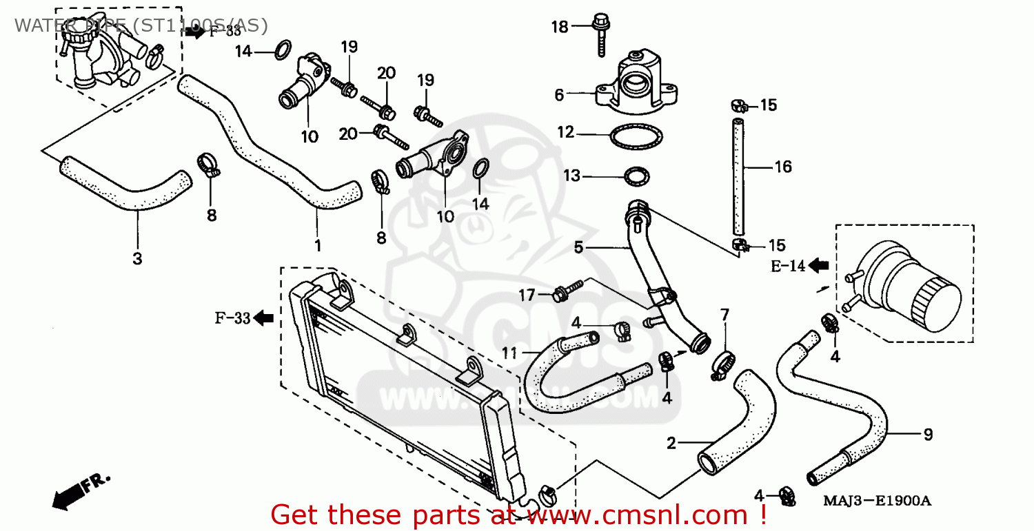 Onder de carburateurs in "de V"(zoals ik dat altijd noem) lopen 2 slangen van je radiateur naar het blok. Daar zijn ze aangesloten via een blokje(zie foto) dit blokje waarmee de slang aansluit op het motorblok is gescheurd. Deze zoek ik nieuw, echter als ik in de handleiding kijk dan zie ik ze nergens terugkomen.